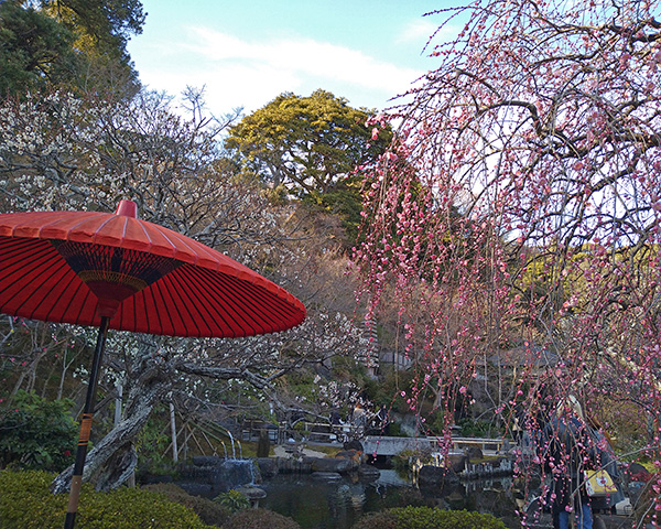 境内はたくさんの種類の梅の花が咲き、ほんのりと梅の香りがして、春を感じられます。