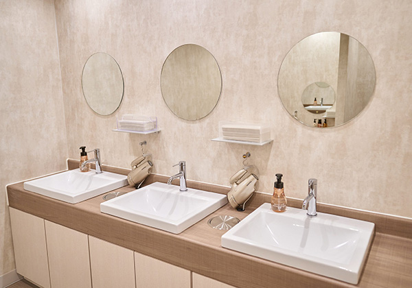 女性にも嬉しい清潔で明るいパウダースペース