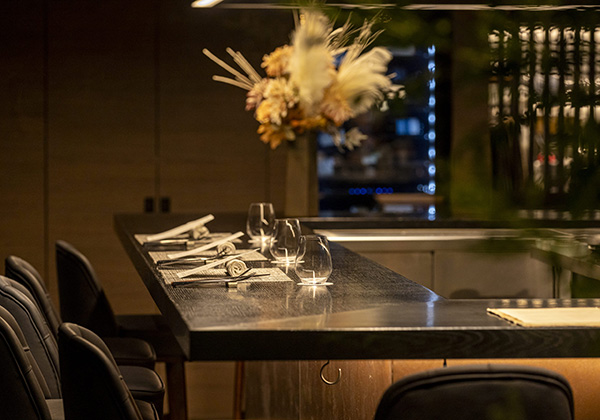 目の前に広がる鉄板を囲むカウンター席では、シェフとの対話を通じたコミュニケーションを楽しみながら、厳選した素材を使った鉄板料理のパフォーマンスをご堪能いただける特等席です。