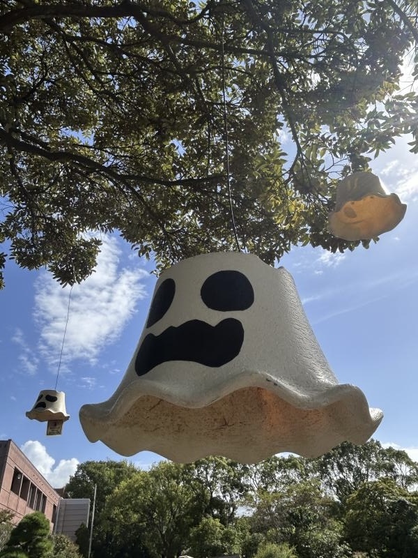 植木鉢を逆さまにしたオバケ。ナイスアイデア!