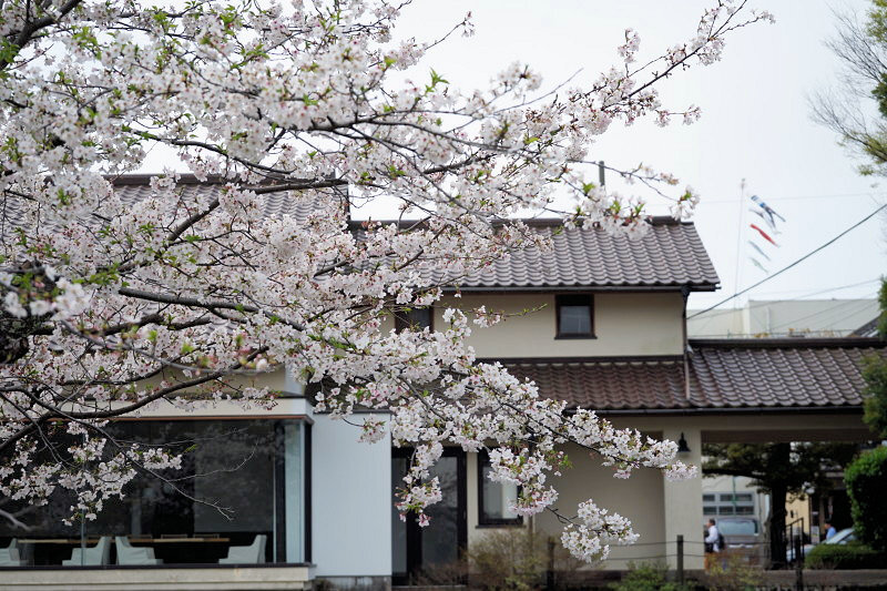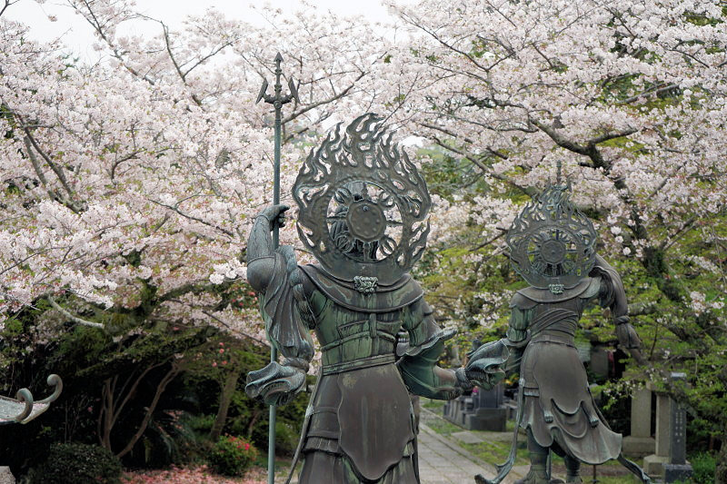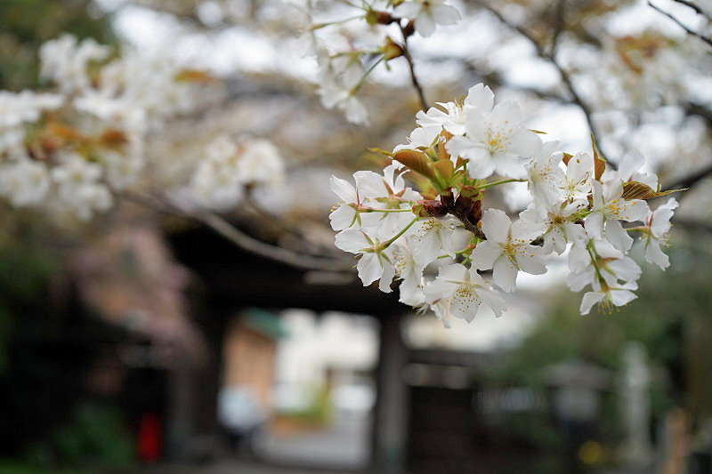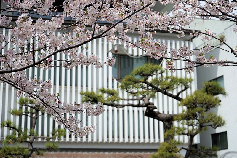 ◆ヤマザクラ技越しの本堂、材木座/長勝寺