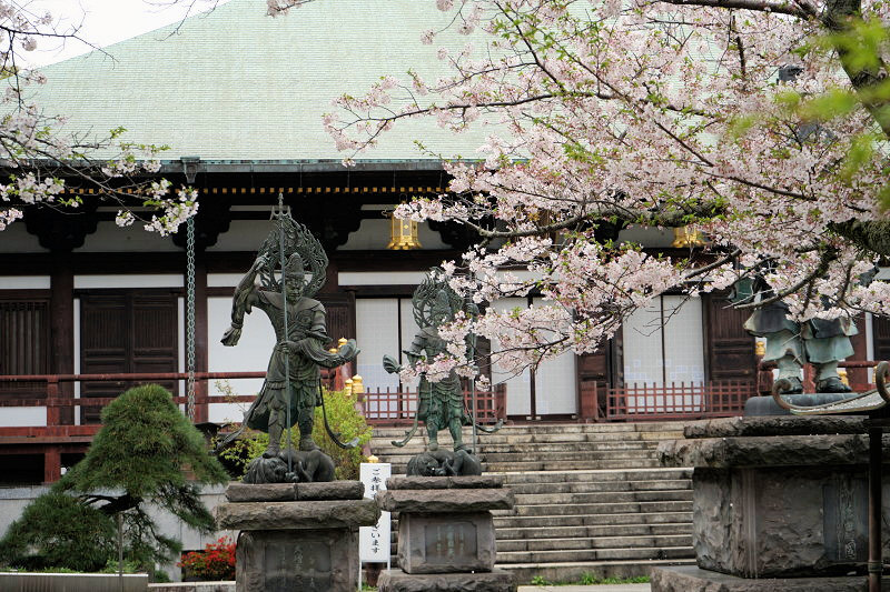 ◆桜の葉が見えてきた本堂(帝釈堂)前、長勝寺