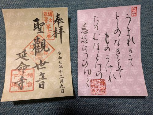 今日はまず延命寺に向かいました、鎌倉33観音様と24地蔵尊さまの御朱印を頂きました・今日は書置きでした。これで24地蔵尊様は2巡目が終わります、あと24番目の安養院さんで頂いて結願です。。。ただ寿福寺さんが御朱印をお休みしているので本当は足りないのですが。。。いつ再開していただけるのでしょうか?33観音様は3巡目のんびりと歩いています。