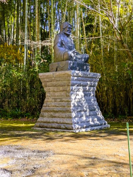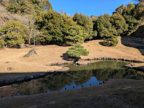 妙香池、水が抜けていますお寺の方に聞いたところここ何年か冬になると水が抜けてしまうそうです。山からの水も冬場は止まってしまうと、写真の奥に見える竹筒が水の出るところらしいです。次は建長寺へ向かいます