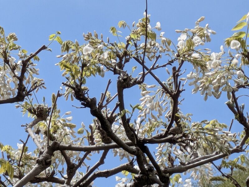 桜のほかにも藤棚があり、白い花と紫、まだ早いですかね