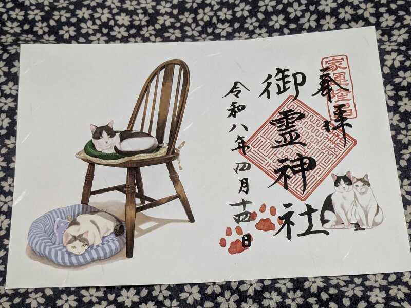 極楽寺さんの御朱印美しいなあ、、、極楽寺の後御霊神社へ♪御朱印にネコさんのが!!!御霊神社の前に力餅屋さんで、すあまを買い歩きながらちょっと食べちゃった