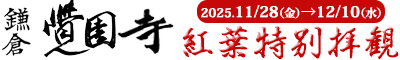 覚園寺では、紅葉を楽しんでいただけるよう下記の期間中拝観時間が9時~19時(18時40分最終受付)まで延長されます。(※通常の拝観時間は10時から16時)夕刻時には、ライトアップもされ、いつもとは違う幻想的な覚園寺を見る事ができ...(2025年11月10日付)