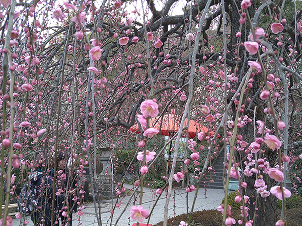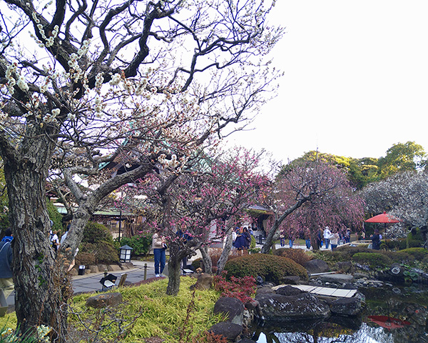 境内はたくさんの種類の梅の花が咲き、ほんのりと梅の香りがして、春を感じられます。