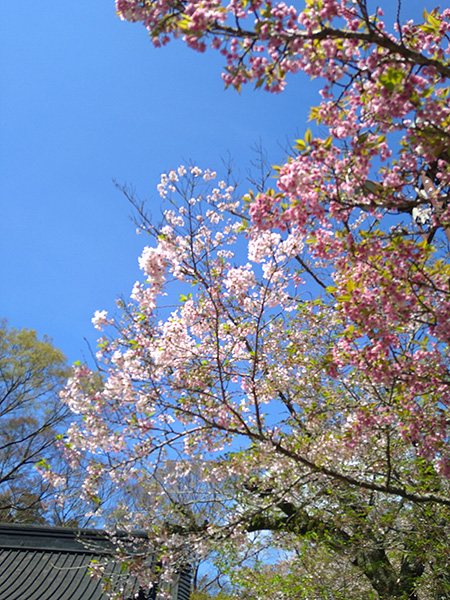 もうカイドウがキレイに咲いています。桜は、葉桜になっているところも…。