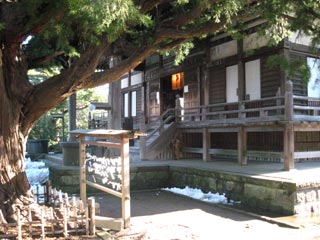 宝戒寺にもまだ雪が残っており、スイセンやロウバイなどとの