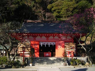 宝戒寺のしだれ梅は五分咲きくらいです。