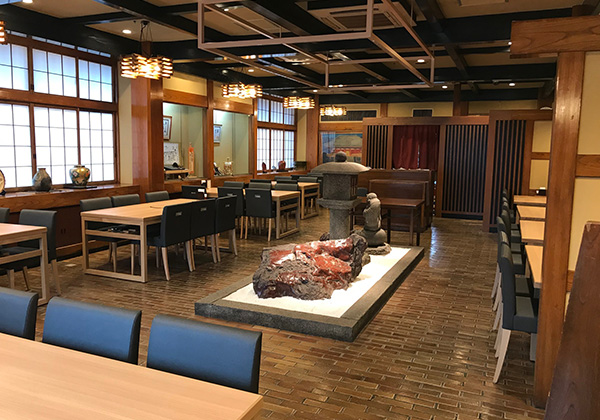 建物は合掌造りの民芸調、店内には貴重な美術品が数多く陳列いたしており、さながら美術館にでもいるような錯覚に陥ります。