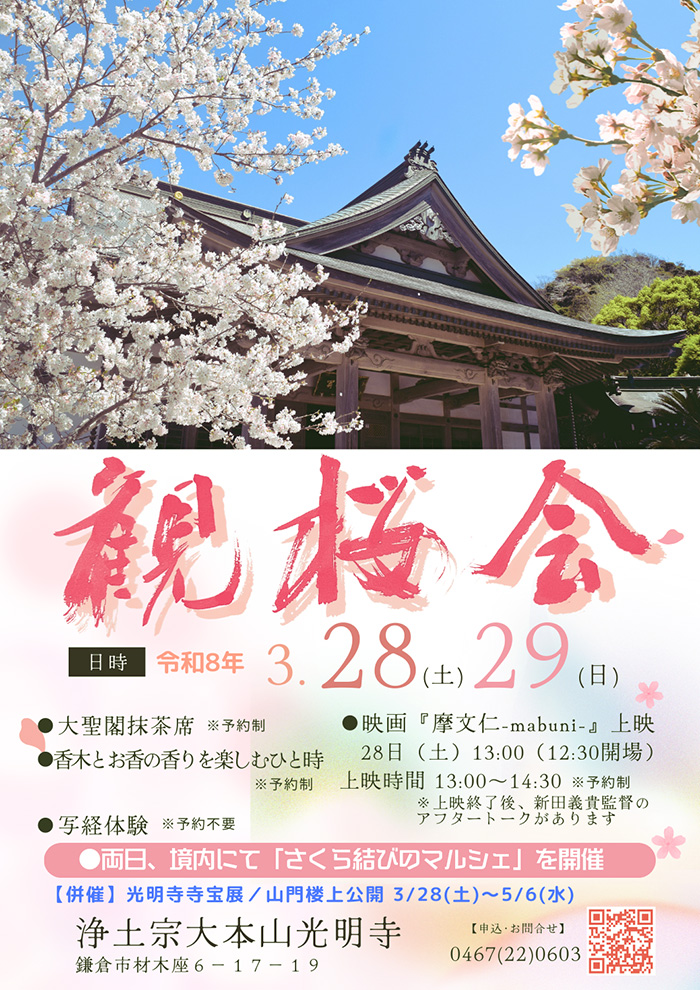 2026年3月28日(土)〜29日(日)、光明寺の春の恒例行事「観桜会(かんおうかい)」が開催されます。
