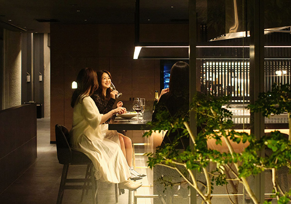 目の前に広がる鉄板を囲むカウンター席では、シェフとの対話を通じたコミュニケーションを楽しみながら、厳選した素材を使った鉄板料理のパフォーマンスをご堪能いただける特等席です。
