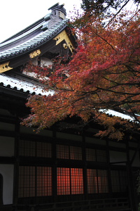 こちらは妙本寺さん、本堂の紅葉です。