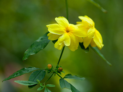 こちらは黄色が目を惹く、ウンナンソケイ(雲南素馨)。