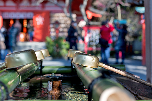 引き続き、荏柄天神社境内。 梅鉢紋の拝殿幕を。