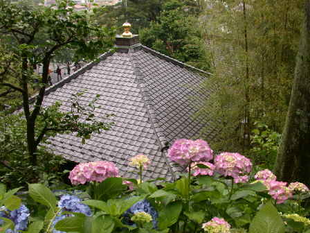成就院から御霊神社へ。ここのあじさいは遅いようで、もう少し先になりそう。