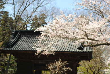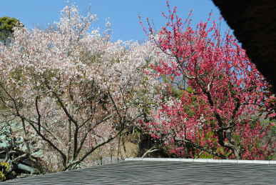 東慶寺の受付の裏に桜と桃の花が競演していた。