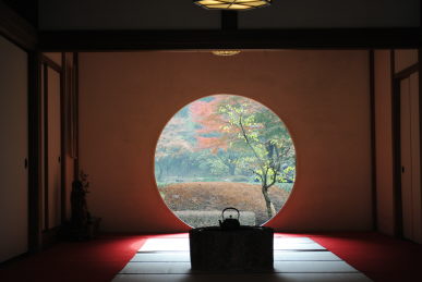 また本堂の丸窓の紅葉も綺麗。