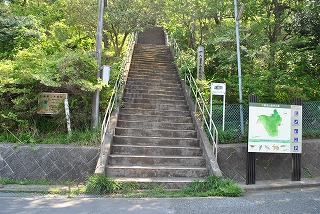 森林公園入口に着く。やや急な石段を登っていくと展望広場に。