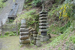駅近くの民家のアパートの奥に南北朝時代の武将上杉憲方の墓と伝えられる七層の塔がある。