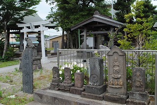 元の道に戻って少し行ったところで右に曲がっていくと柄沢神社があった。入口には庚申塔が並んでいた。