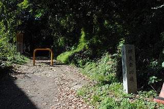 更に歩いてゆくと熊野神社への道の表示。その先は切通しの最高点。