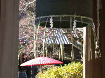 山門から本堂を望む 正月らしく提灯が下がっていた