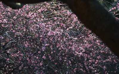去年よりは、少し遅めですが、傘のように広がるしだれ梅が見事です。