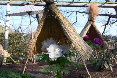 冬牡丹ともいわれますが、神苑牡丹庭園では、「寒牡丹」と呼ばれています。