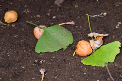 イチョウの葉は、まだ少し黄色くなったばかりですが、ギンナンが落ちていました。