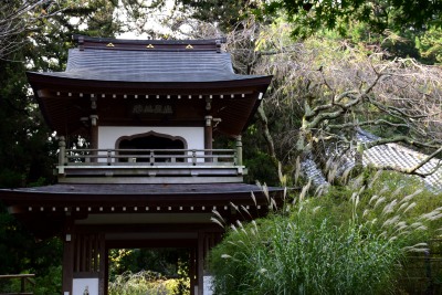 浄智寺の鐘楼門では、ススキの穂が寂しげに揺れていました。