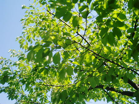 河津桜の木は、爽やかな若葉が顔を出しています。