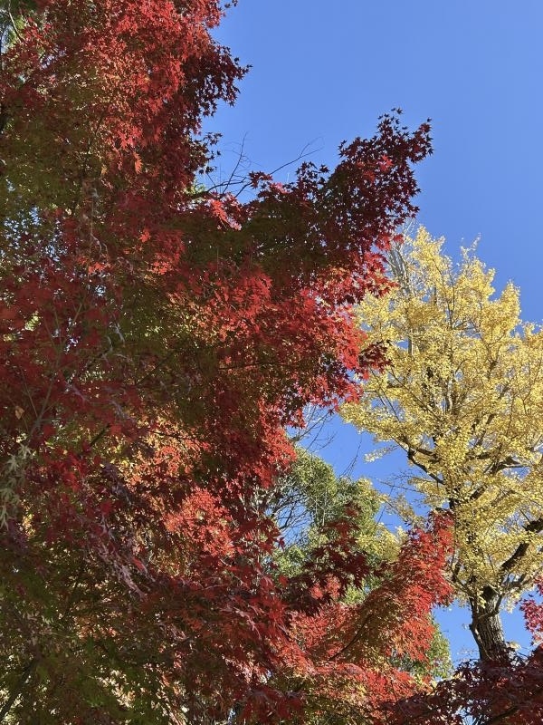 鶴岡八幡宮には色付いたモミジやイチョウも。