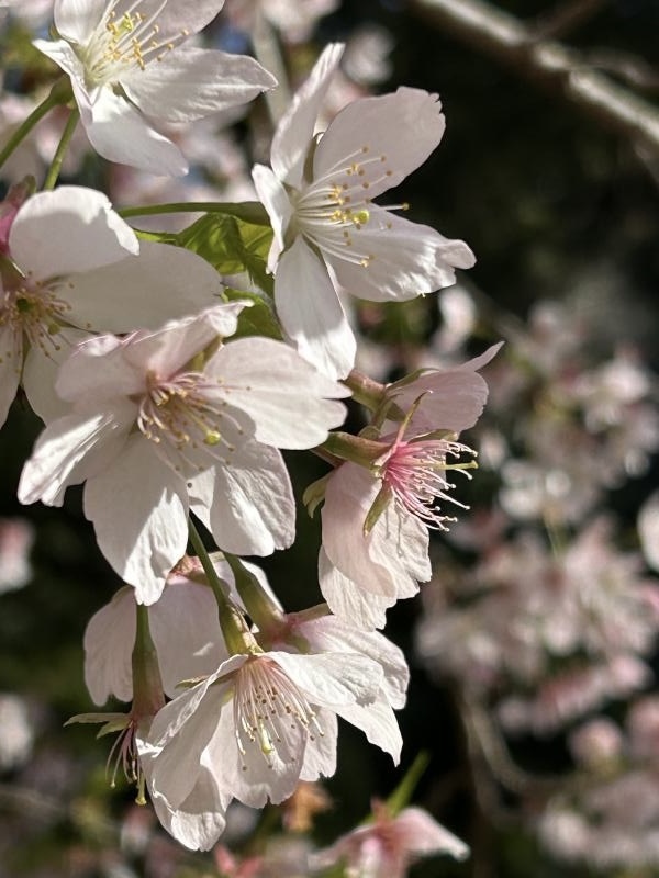 花粉症にもめげずに『お花見』して来ました。 昨年秋に知った玉縄桜が気になっていたのでまずは鎌倉の甘縄神明神社に。 陽当たりが良いせいか(神様の御加護か)こちらの桜は早いようでもう花の中央が赤くなっていました。 でもチラチラ散る感じも風情があって好きなんですよね〜。