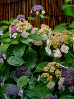 前庭には所狭しと、いろんな種類のヤマアジサイがあり、