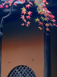 本堂裏のモミジ。今年は鮮やかさ少し控えめ(?)