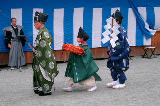 赤い鏑矢(Red arrow ?)が小笠原流で放たれ見事命中。