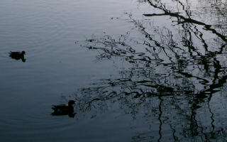 みせる早朝の源氏池。 それでも日陰は冷たそう。