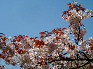 紅白のハナモモ(照手桃)とソメイヨシノ。