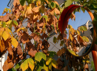 黄色くなったアオギリ(?)の大きな葉っぱを