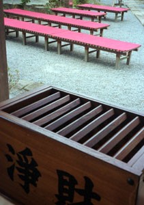 年代モノの石灯籠と比較すれば、新築の感あり。