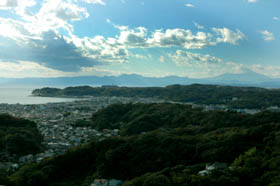 衣張山山頂からは鎌倉の町、由比ガ浜、稲村ヶ崎、
