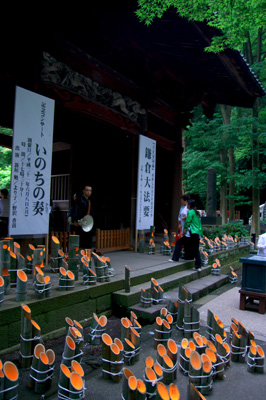 と「いのちの灯」と題して竹灯籠アートが境内を飾りました。