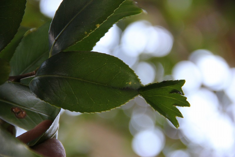 『金魚(錦魚)葉椿』或いは『金魚(錦魚)椿』と呼ばれているそうです。葉の先端部が3~5裂に分岐して魚の尾ひれの形状をしています。 葉の先端が下へ曲がって分かれています。その姿は、なるほど“キンギョの尾”のようです。何度も寶戒寺へは、お詣りしておりますのに・・・。今まで知りませんでした。奥深いですねぇ~♪。