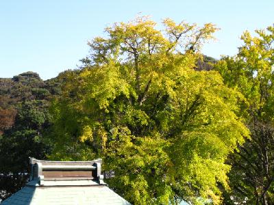 紅葉も少し色づき始めましたが、法華堂横の銀杏が黄葉しています。しつこいように色々なアングルから写してみました。