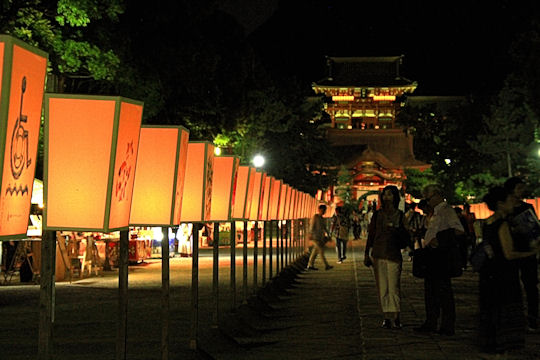 前号からの続きです。 巫女さん達により、ぼんぼりに明かりが灯されると