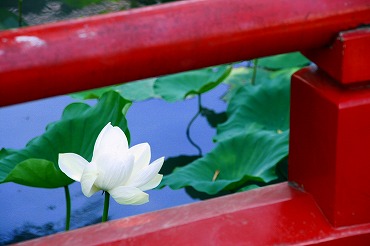 紅白の蓮の花が咲く源氏池から、白の蓮の花一色の平家池へ廻ってみました。