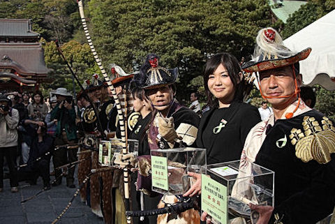 射手の皆さんは参道でミス鎌倉、役員の方たちと共に募金活動を行いました。